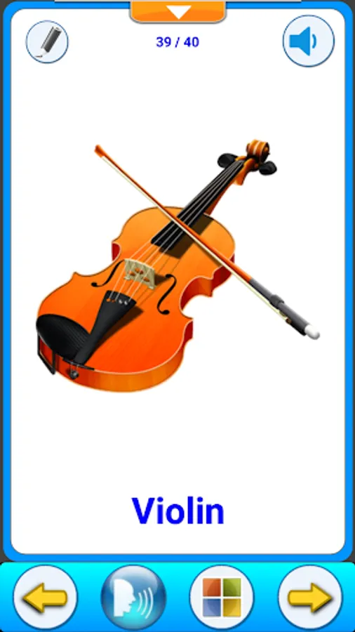 The app provides the best way to get started learning many kinds of Musical Instruments which contains many cards, each word card are voice-enabled, and related words and pictures.