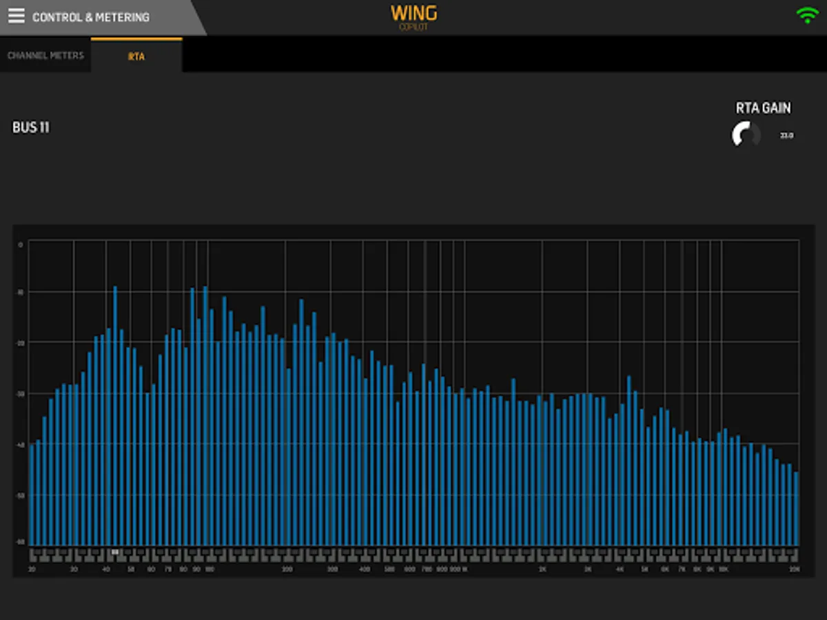 Additional metering can be displayed on your iPad next to your console touchscreen. It includes levels of all Sources, Channels and Outputs and an RTA that can follow the selected channel or be assigned to a fixed signal path.