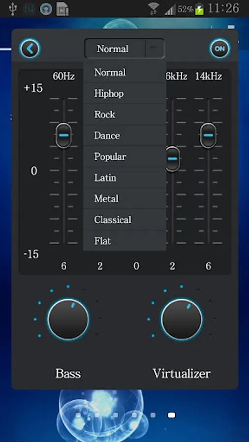 * 9 equalizer presets : Classical , Dance , Flat , Popular , Metal , Hip Hop , Rock , Latin , Normal
