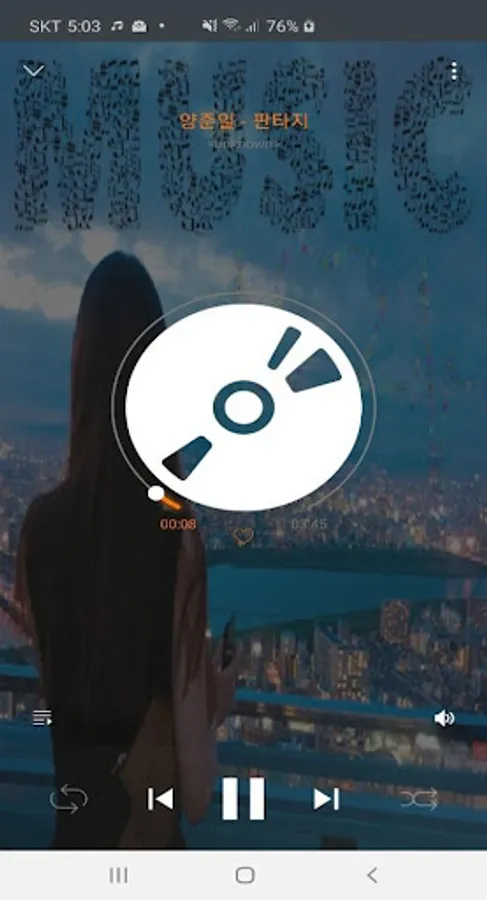 Its automatic random change the background with Multi beautiful background skin, through Gaussian blur, makes your music player look more outstanding