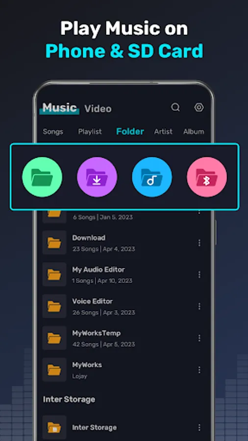 Music Player Lite - MP3 Player is a media player to play your local music, you can play songs under different folders, and you can even play music on your SD Card or TF Card.