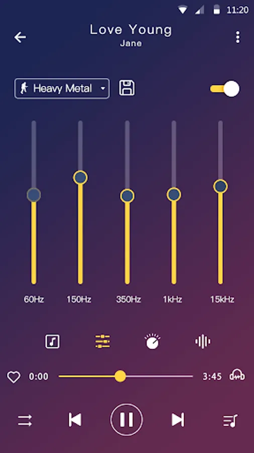 * Select your eq musical taste in 10 presets: Normal, Classical, Dance, Flat, Folk, Heavy Metal, Hip Hop, Jazz, Pop, and Rock, or you can adjust the equalizer manually