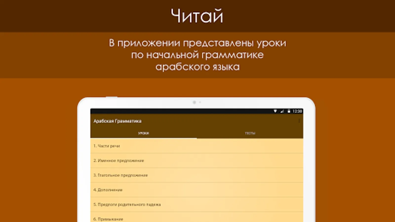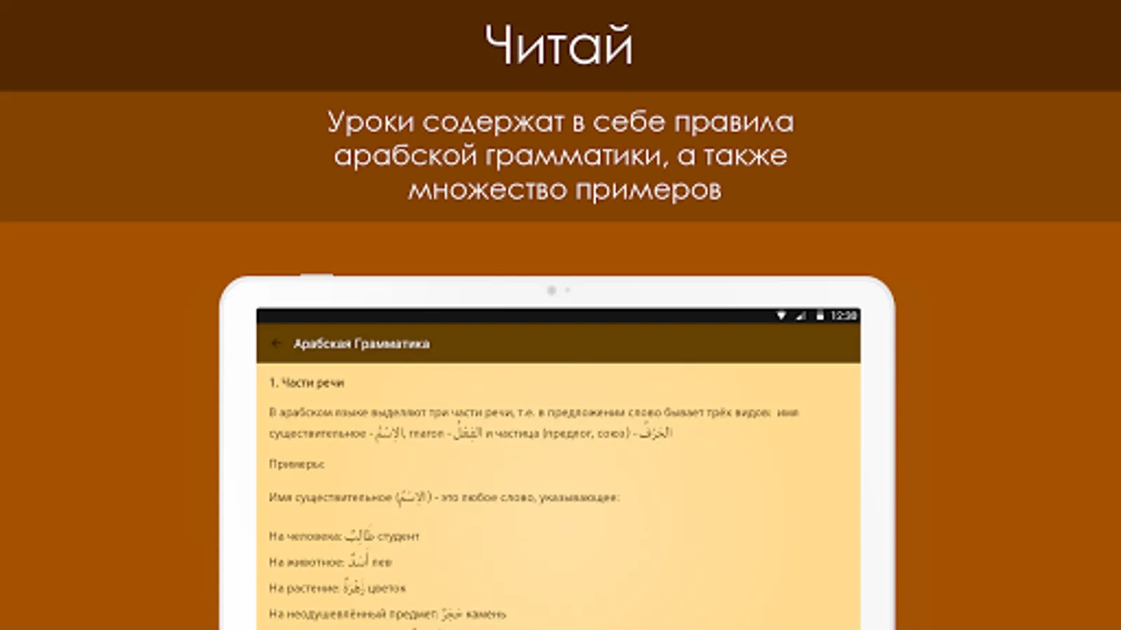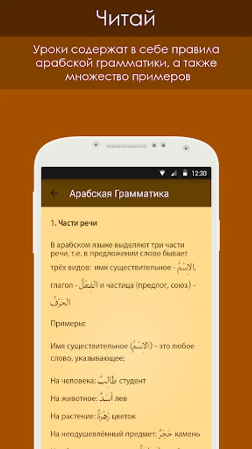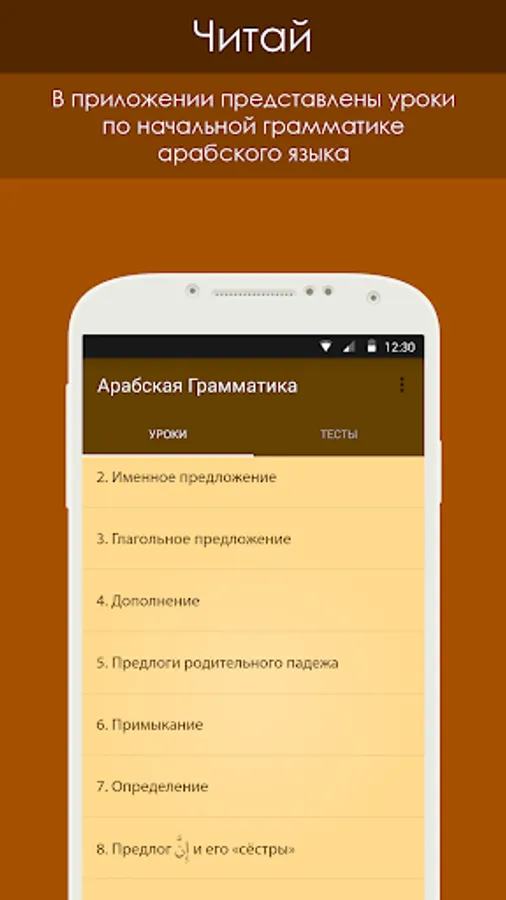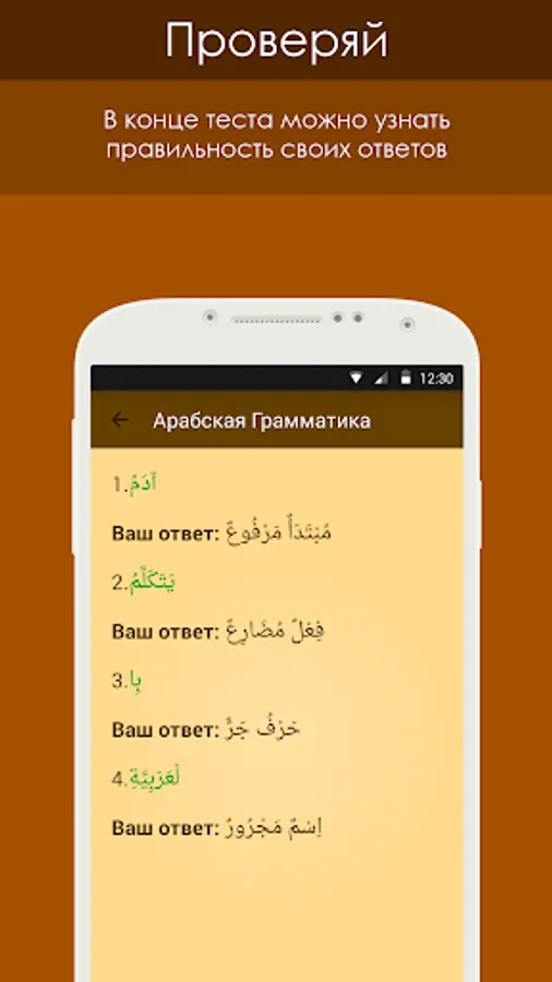 This application includes the most basic topics of Arabic grammar. It is designed for those who are somewhat familiar with the Arabic language and wishes to continue his studies. For each lesson, there are tests in which the user can evaluate how he understood traveled theme.