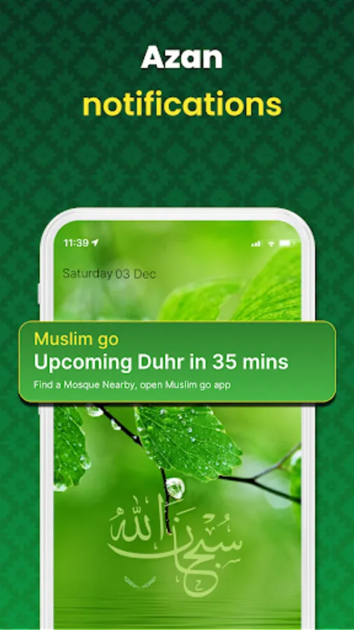 Receive notifications at all Muslim prayer times from the مسلم برو(muslim pro) so you can prepare for Azan or Athan. You will never miss a call to prayer (الصلاة) owing to the Azan notifications called out five times a day so you can offer Namaz.
