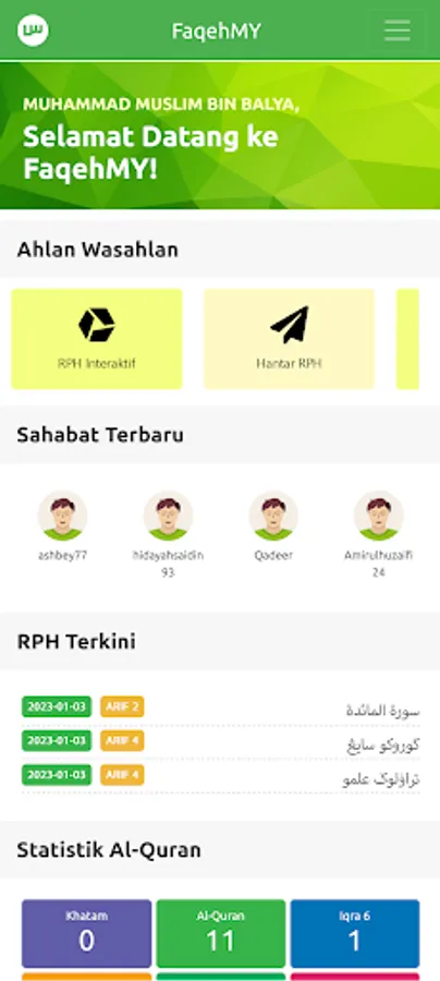 FaqehMY is an application for teachers that includes the RPH system, PBD recording, Inventory, Tasmic Records, and student management.