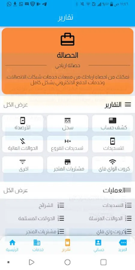 The client can issue reports that show him the financial movement of his personal account and also enables him to follow up on the profits in the application.
