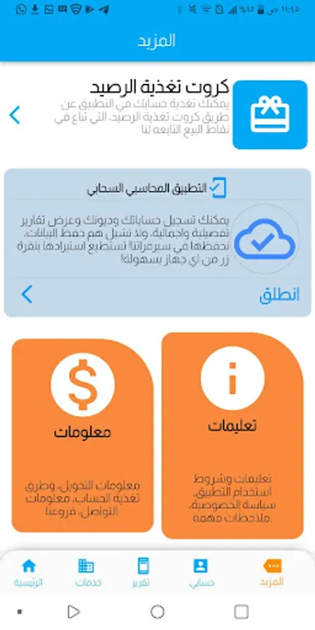 The application allows the customer to inquire about the current balance and the type of number that he will pay, as well as displays the total price of the service before approving the implementation by the customer.