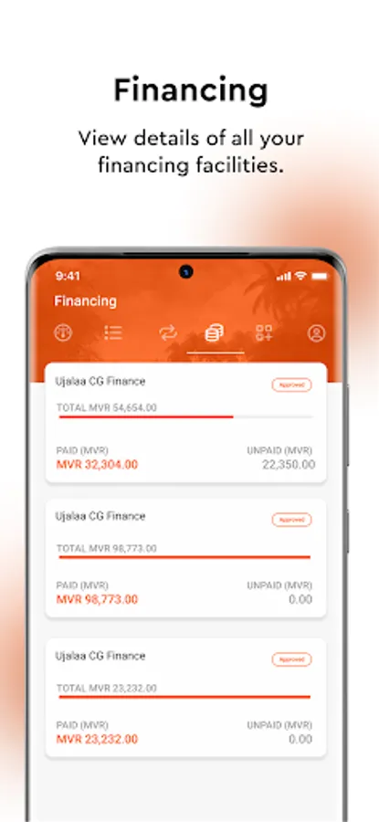 - View all your financing facilities in brief and in full detail