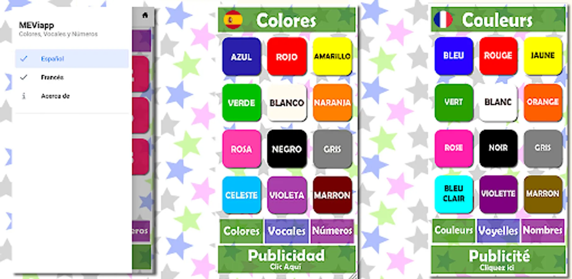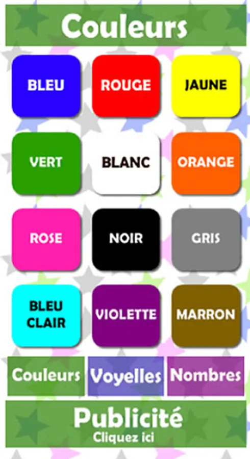 Simple presentation, you can visualize the colors, how they are written and listen to their pronunciation.