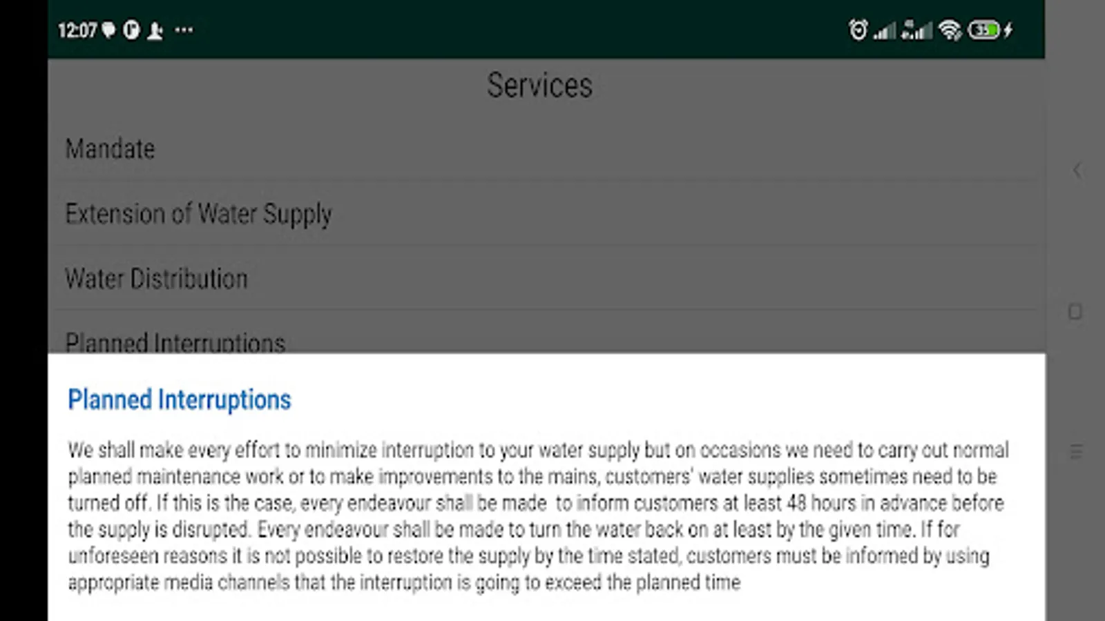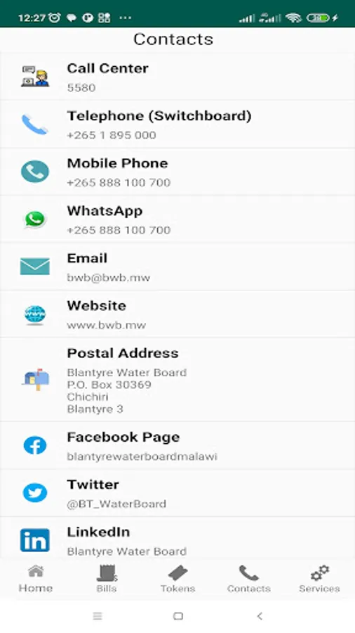 App to help you perform bill inquiry, and token inquiry; report faults or other illegal activities on BWB infrastructure; know our services, tariff structure, payment options, service centers, and contacts; stage complaints and give us suggestions on service improvement; and know what we are doing through notices.