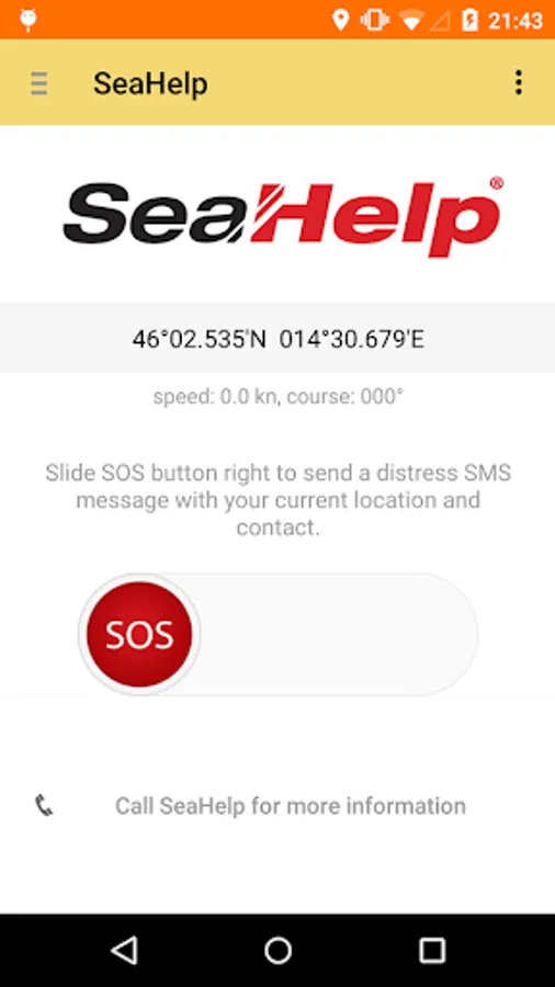• Appeal for help via SMS to the SeaHelp operations centre indicating the coordinates of the actual position of the person seeking help, the mobile phone number for recalls from the SeaHelp operations centre and the SeaHelp membership number guaranteeing priority treatment in the case of several simultaneous requests for help.