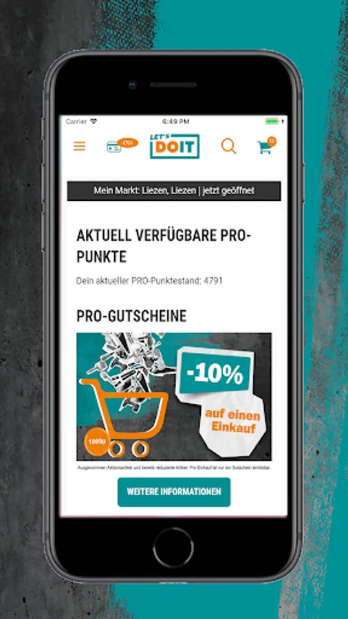 For every purchase in a LET'S DOIT Store or LET'S DOIT Online Shop you'll get points. These can be spent entirely on your mood in available coupons. These ensure that you can save even more - whether online or offline.