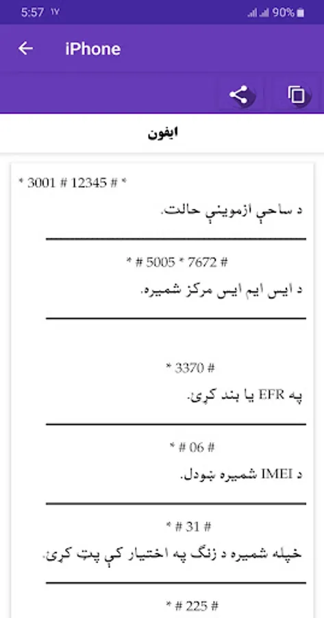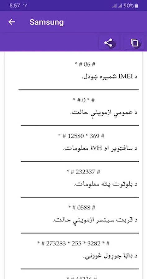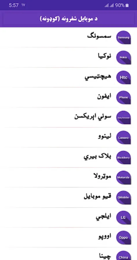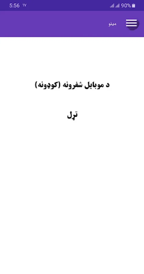 په دې وړوکي کاریال کې د لاندې موبایلونو کوډونه ځای پرځای شوي دي: