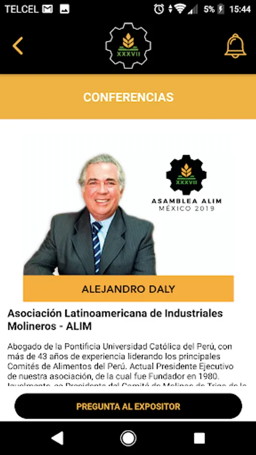Official application for the Assembly XXXVII of ALIM in charge of the CANIMOLT to be held in 2019