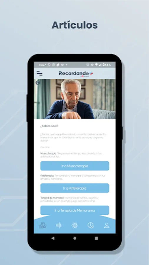 An application to accompany doctors, patients and caregivers of conditions related to cognitive impairment such as Alzheimer's disease. With interactive tools that contribute to daily cognitive activity