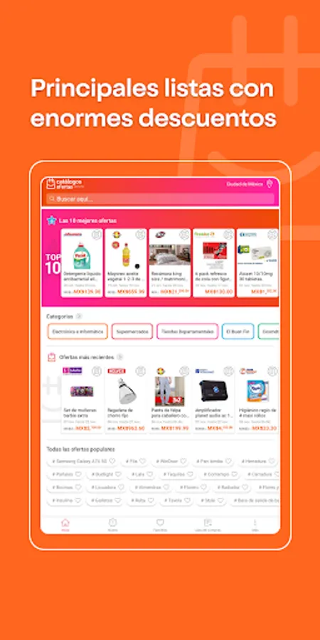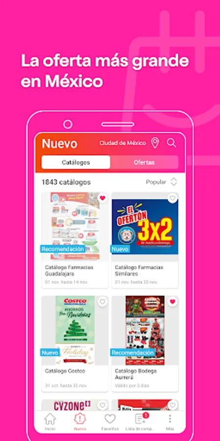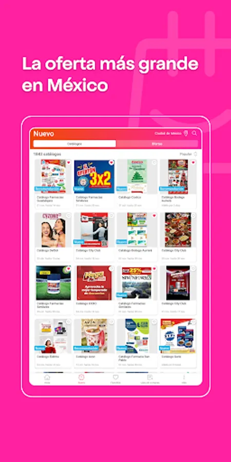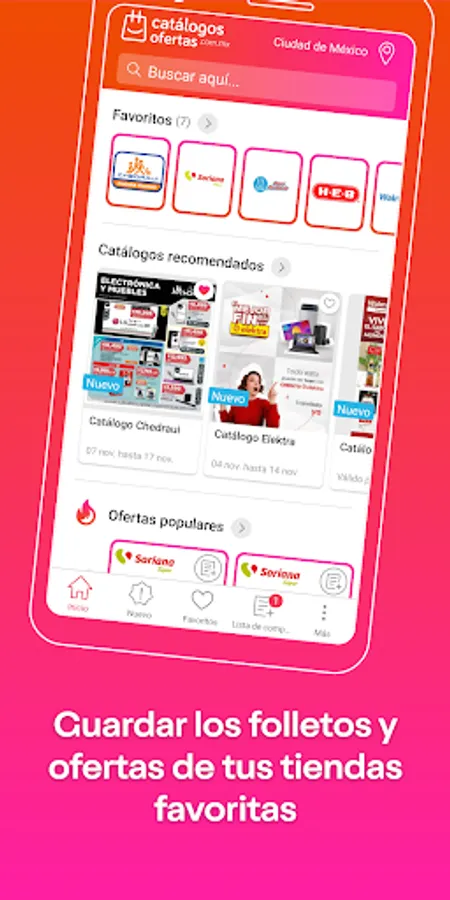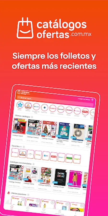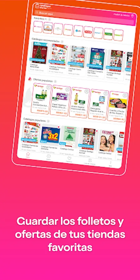 Our catalogosofertas.com.mx application shows you all the current catalogs of small and large chain stores in Mexico, and not only supermarkets and construction stores, but also electronics, fashion, toy, computer, pharmacy and much more plus. We have even included most of the local stores. Do you want to select a store as a favorite? You can do it easily by clicking on the heart. In this way, you will always be the first to find out about current promotions in your favorite stores, and you will be able to create a practical compilation of all your favorite catalogs.
