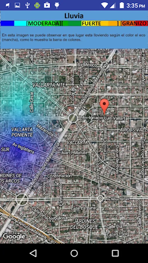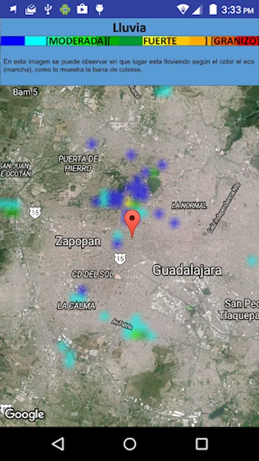 Map that automatically updates measurements of Doppler Radar at the University of GDL that covers much of the territory jalisciense.