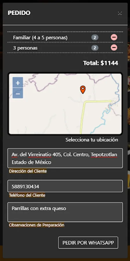 Digital menu of products. Orders by WhatsApp. Customer location on map. Managed from panel.