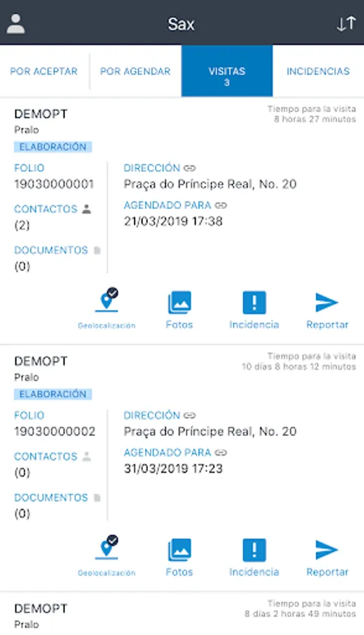 Sax Go allows you to know and make the visits you have assigned, take the location and photographs with automatic geolocation, receive notifications, mark incidents and report the information to Sax.