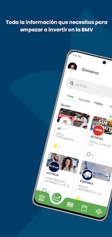 • Issuers: Track your favorite stocks, check performance graphs, financial indicators and much more information. In addition, discover information generated by the issuers of Shares, Fibras and ETFs of the local market.