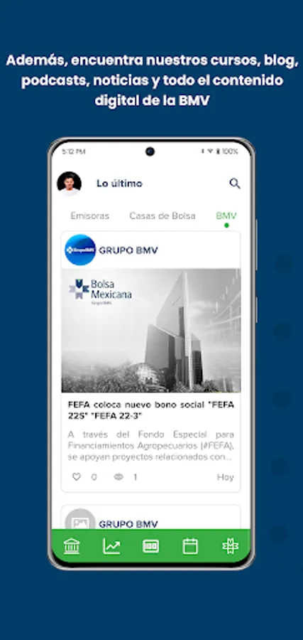 BOLSAPP is an application where you can learn about the Mexican stock market in a simple, free and digital way. Get to know and explore the investment instruments listed on the BMV, interact with the different market participants and prepare to take the next step as an investor in the stock market.