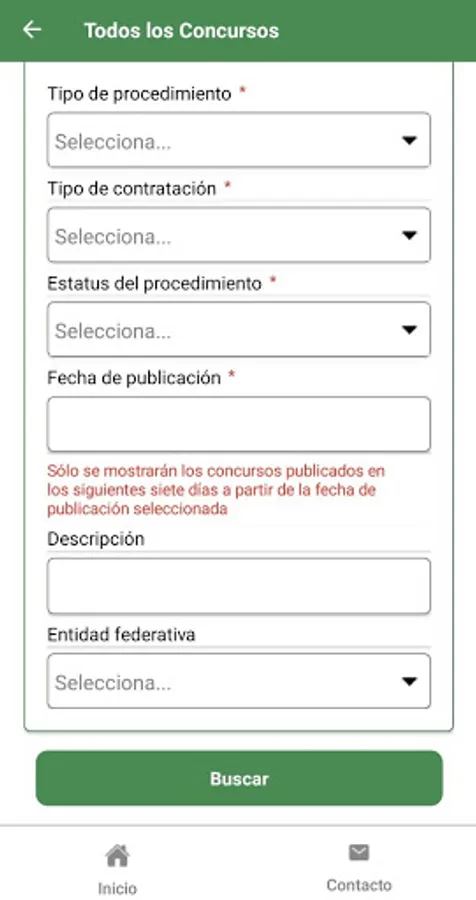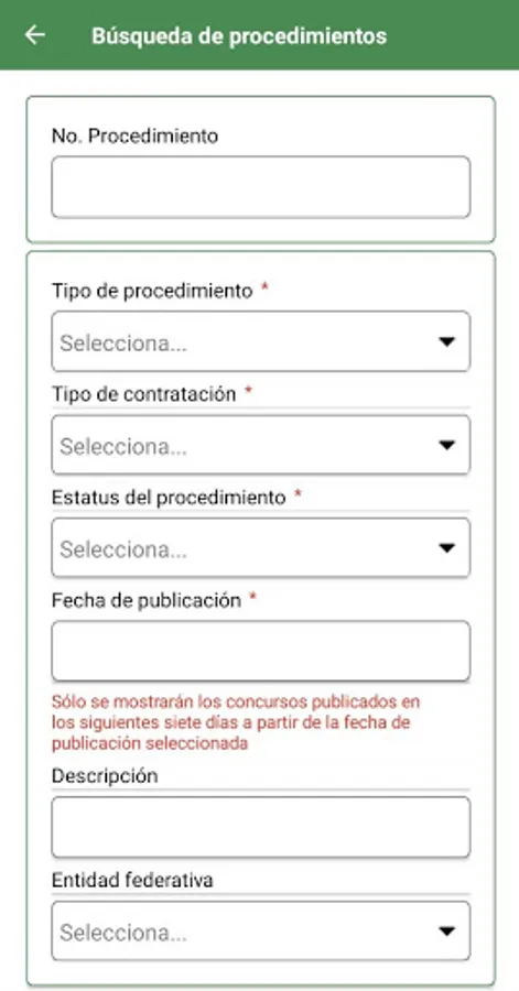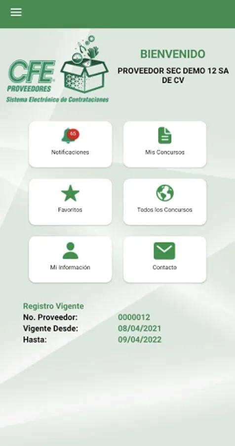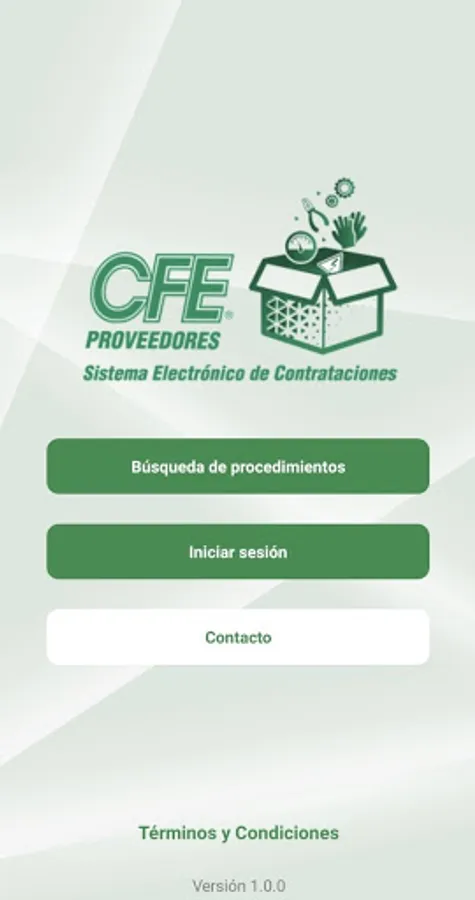 Application to disseminate to the public the contracting procedures of the Federal Electricity Commission (CFE) and consult the procedures in which the suppliers or contractors registered in the Electronic Contracting System (SEC) of the CFE participate, in this application you can perform the following actions: