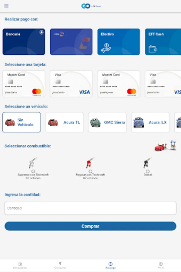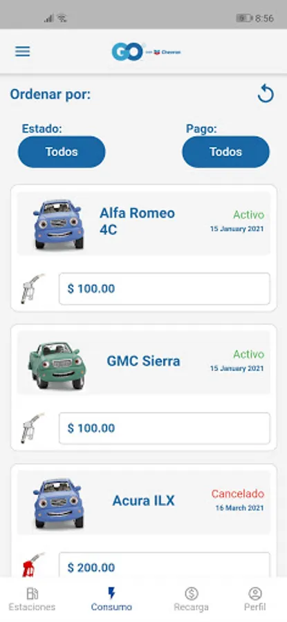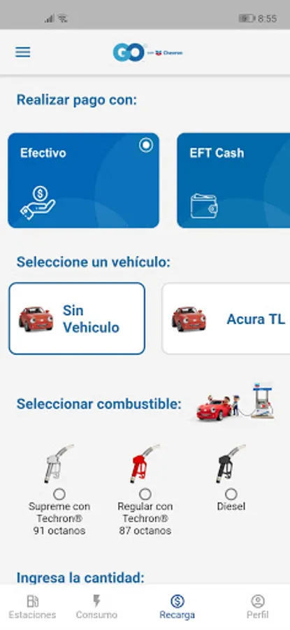 With the Chevron GO application you can register a bank card, a XIGA wallet account or deposit cash to your EFT Cash account, to be able to buy, administer and manage your fuel consumption.