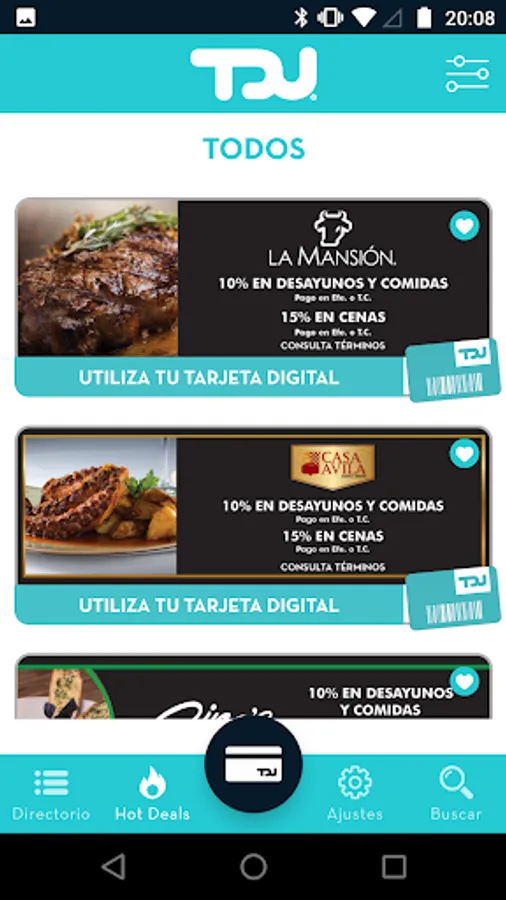 • Basic information of establishments: percentage discount and / or promotion, restrictions, address (geolocation), phone (s), web page categorization by rotation