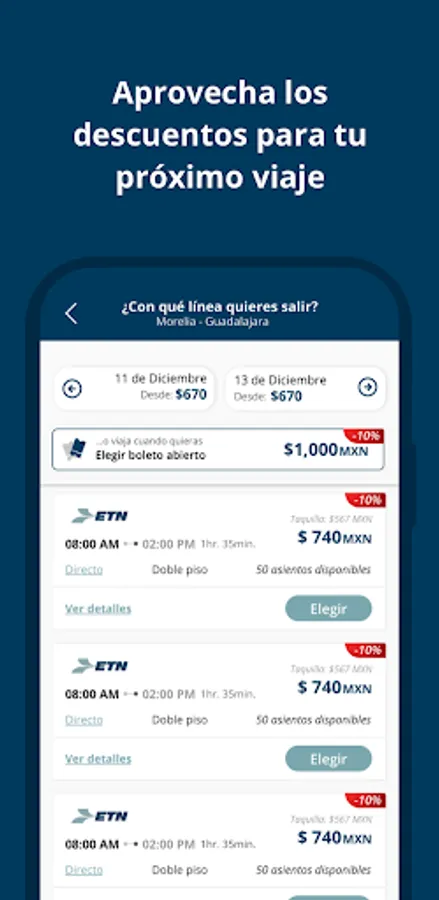 We seek to facilitate the planning of your bus routes or bus trips. With the ETN app you will be able to check all the bus departure times, you will find their points of sale or ticket offices where you can buy your transport ticket, or if you prefer, you can buy your ticket from the app.