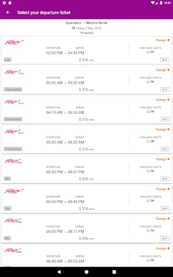 Buy your bus tickets from your mobile device with Futura - the bus line in Mexico with the most coverage.