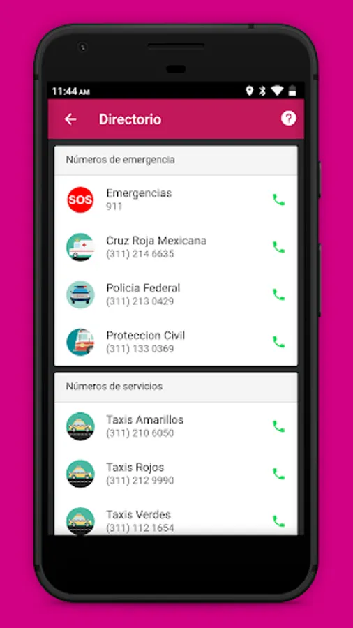 - Access to the emergency directory that contains the most frequent emergency numbers.