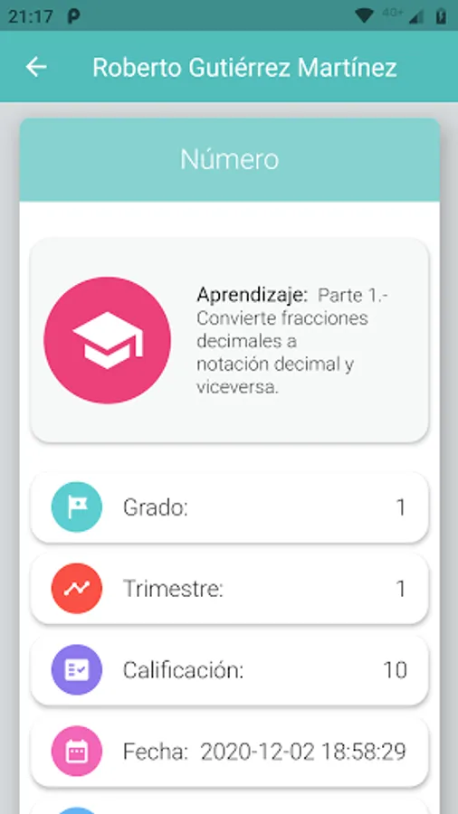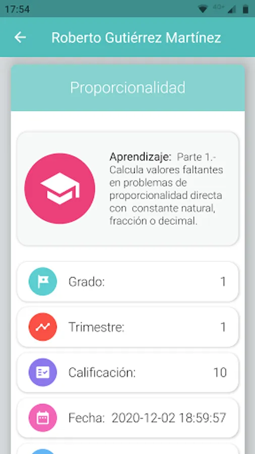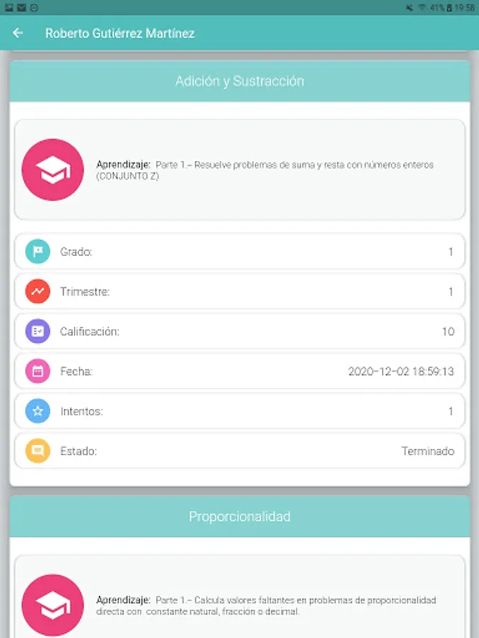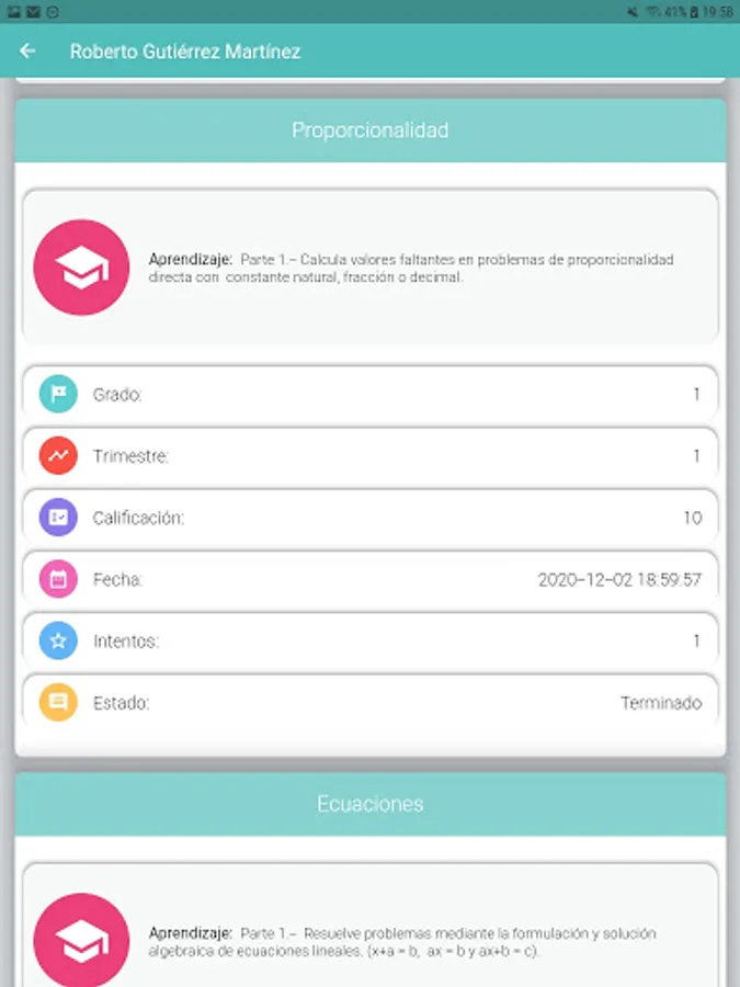 The APP. AAE, "Advancement of School Achievement", allows the tutor or parent to consult at any time and on any device including the cell phone, the progress in the achievement of school achievement obtained through the pedagogical instrument: "Put your knowledge to the test" of each one of their children in Mate365: "COMPLETE COURSE OF MATHEMATICS", in the corresponding academic degree and of their interest; first, second or third year of secondary school and that was established in the contract by the interested parties.