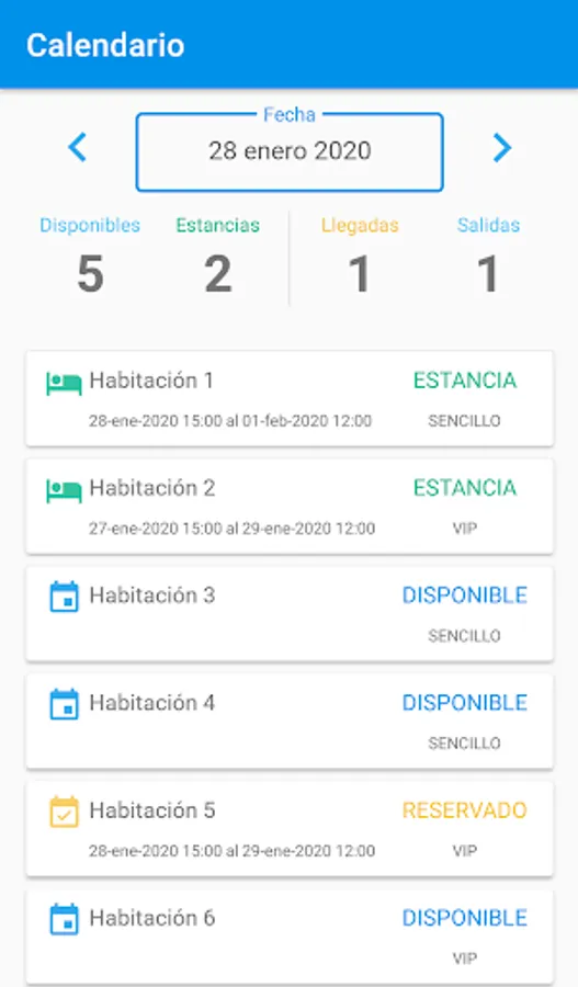 You can also visualize the situation in real time of the rooms with stay, available, number of arrivals and departures.