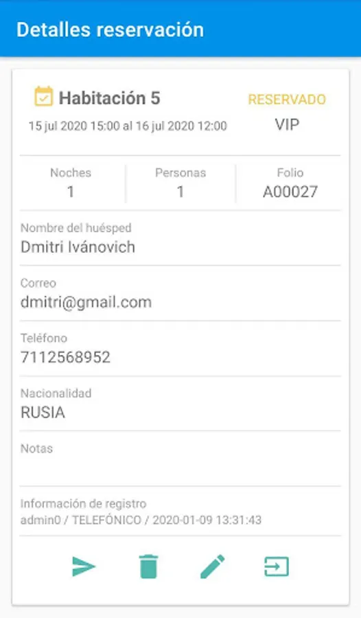 Control the check-in of your customers using a QR code generated and sent to your guests from the QReservaciones web system.