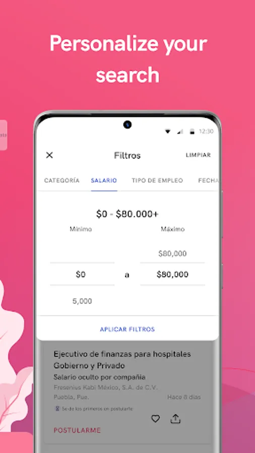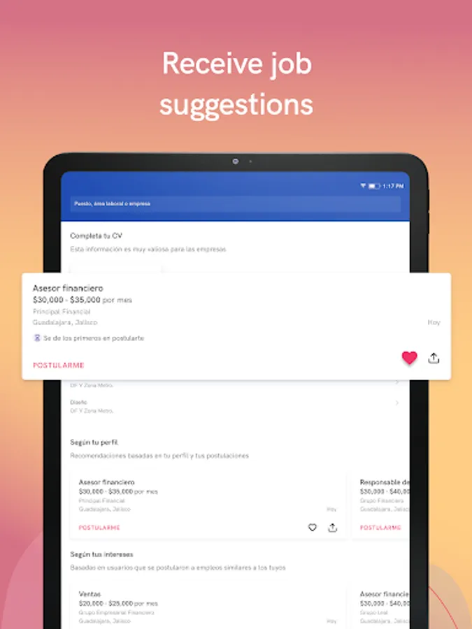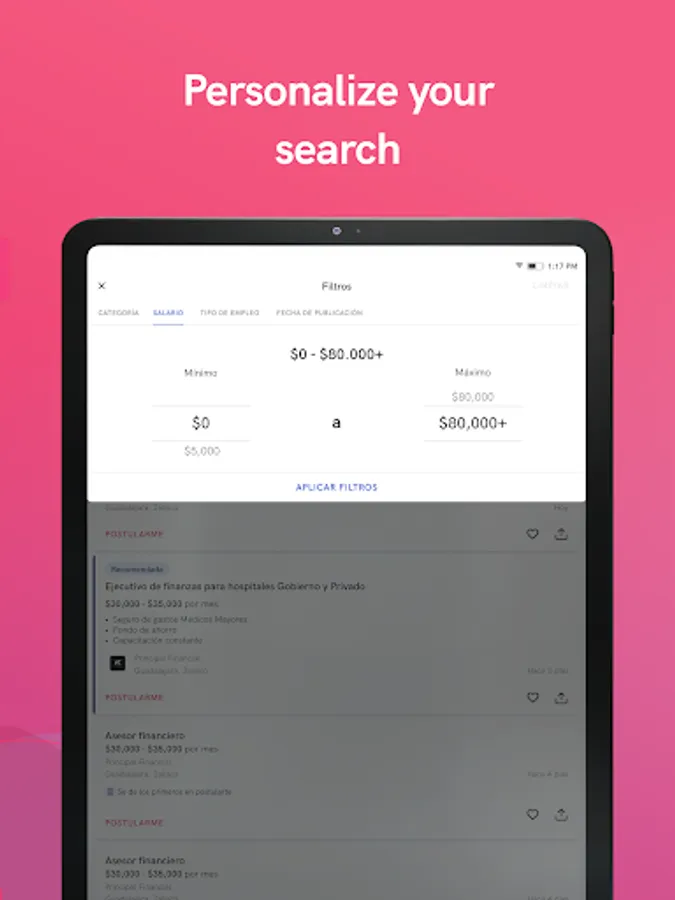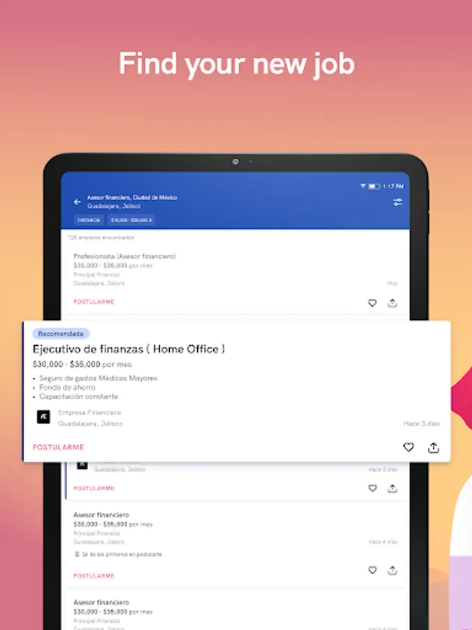 Between the different job advertisements, look for the ideal vacancy, you can filter by position, area, company, city or state