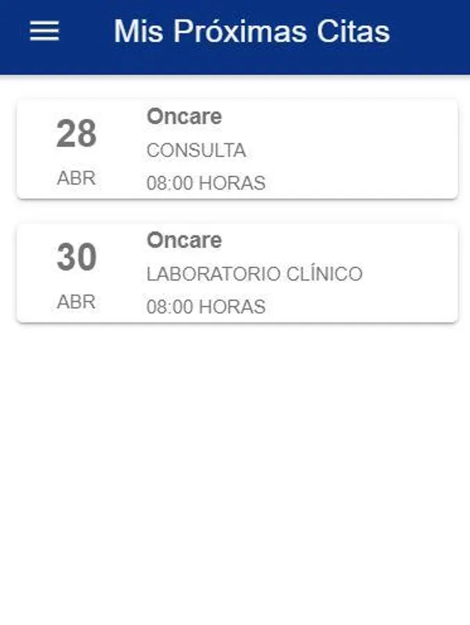 Mobile application for Oncare patients with which they can consult their studies, receive notifications, remember when their next appointments are, the location of our clinics and other information relevant to their care.