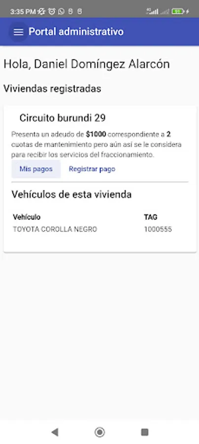 tufrac is an application that will allow you to better manage your subdivision by integrating residents located by streets with their maintenance fee payments and providing exclusive services to those who are up to date with their fees; tufrac also allows you to record visits to each of the homes, schedule visits with QR codes; It also has the function of registering vehicular and pedestrian access tags and synchronizing them with compatible access control panels.