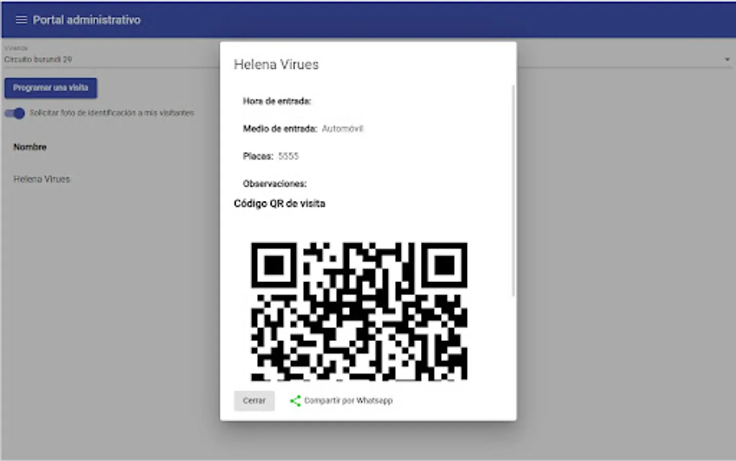 - Generation of visitor QR