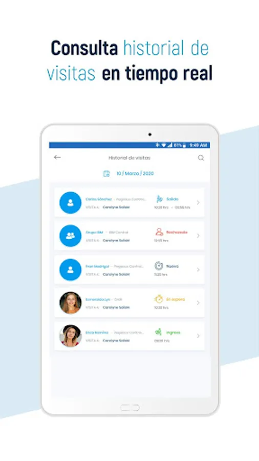 Photography and take your visitor data record Ordil agile. Meet detail who goes in and out, who attended the visitor, the reason for your visit and how long they stayed on your site.