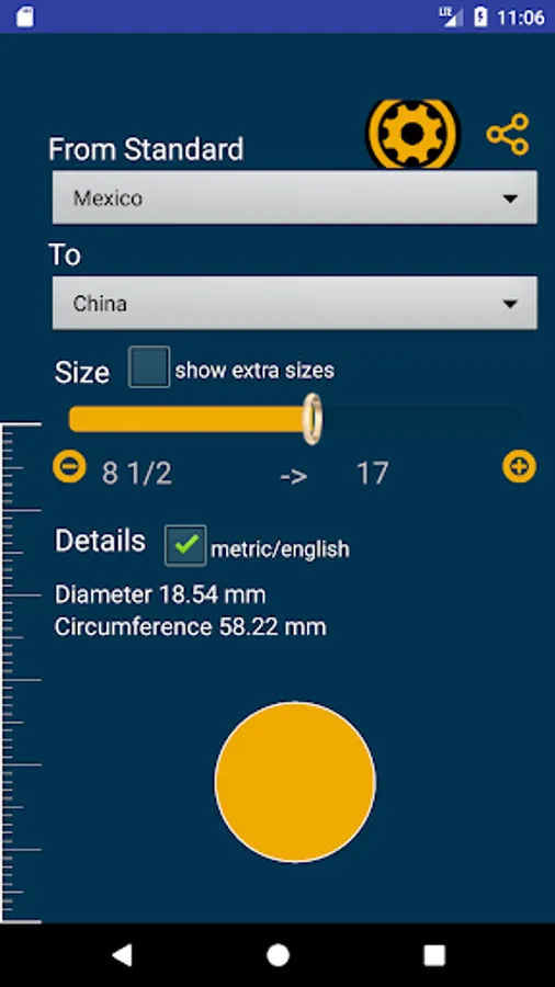 This applications has being designed as a tool to find what is the current size of a physical ring in different standards from around the world and know it's equivalent size in other standard or country..