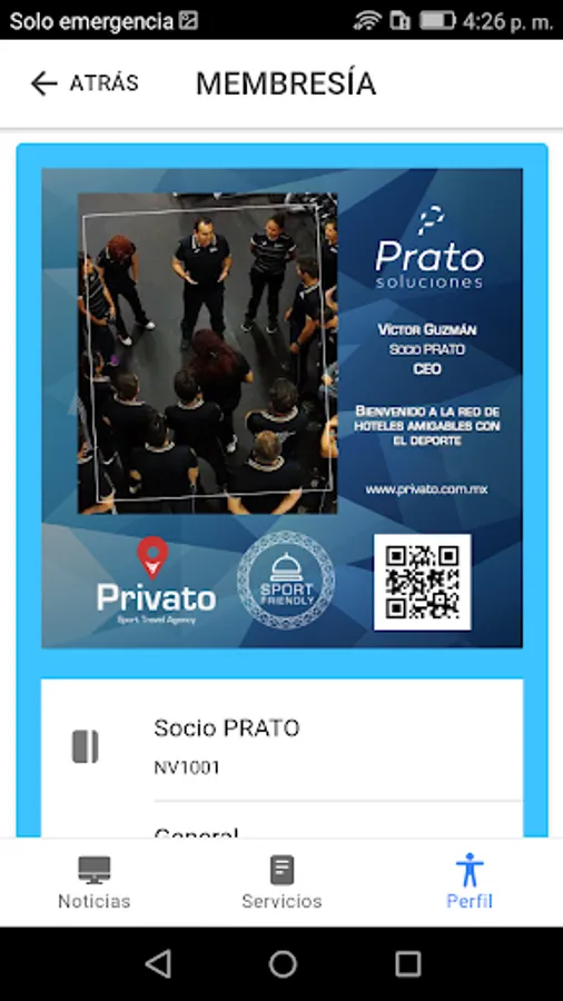 In this application you can have your digital membership of Privato and Privato Player that you can present in the authorized establishments and obtain promotions benefits. With this mobile application you can receive information on promotions from the Private and Private Player community. In this application you can view information on current providers and promotions, as well as information on purchases that have been registered with your account.