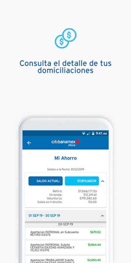 AforeMóvil Citibanamex is the mobile application that will make your Afore is closer than ever. You can take control of your Retirement Savings practical, simple and immediate security and backup Citibanamex way.