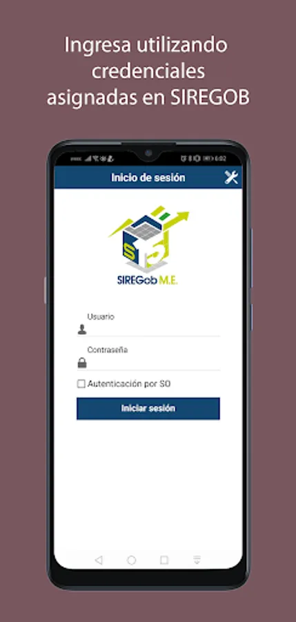 New users must first register their credentials (username and password) on the SIREGob platform. After entering the login data on the mobile device, access is done through authentication (fingerprint or pattern, as the case may be).