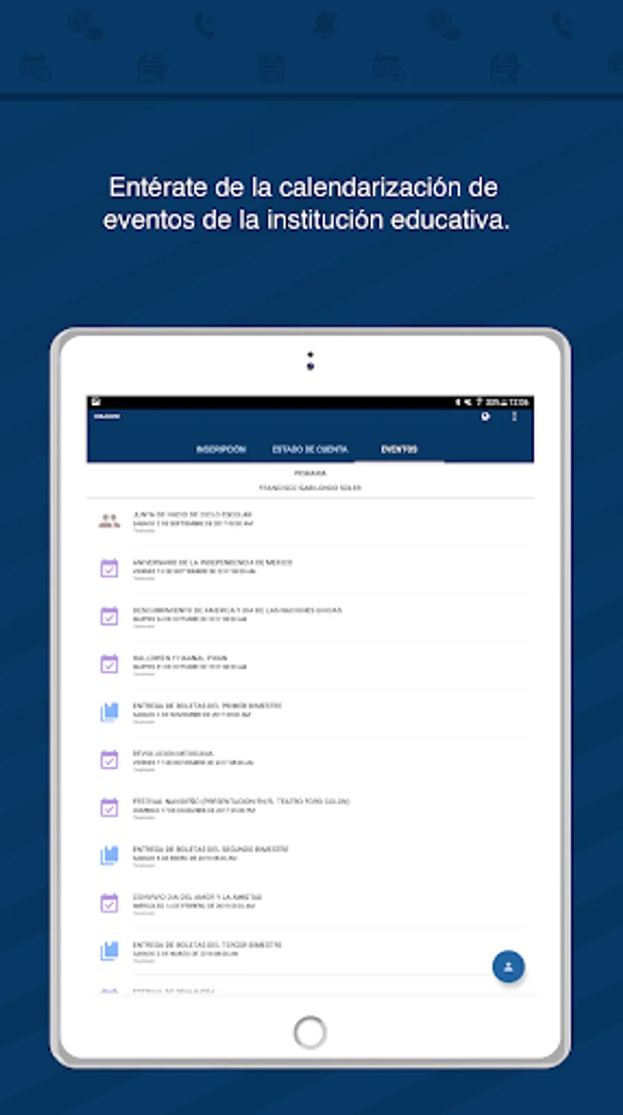 Parents or guardians can check their child's enrollment, the account statement of fees and services, and the events scheduled by the school throughout the school year.
