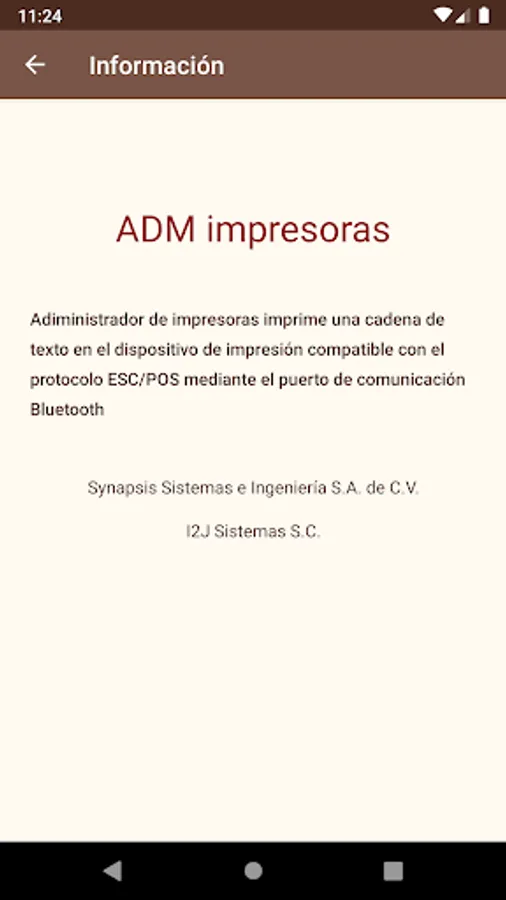 ADM Printers. It is an application that allows you to print a text string on the printing device compatible with the ESC / POS protocol, through the bluetooth communication port.