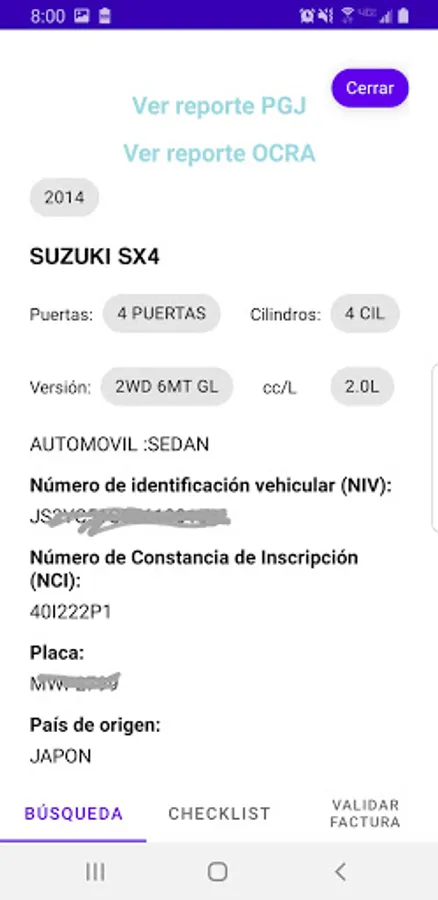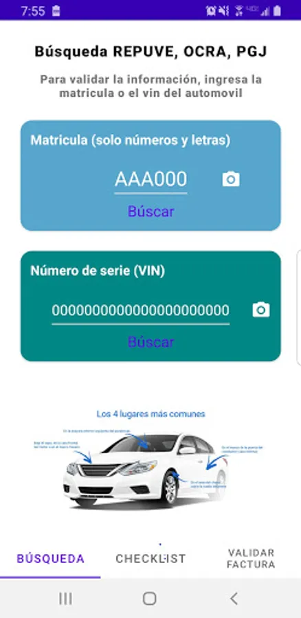 ValidAuto allows you to make inquiries in the public vehicle registry (REPUVE), entering the License Plate or the Serial Number of the vehicle.