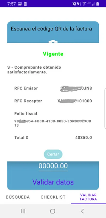Validation of electronic invoices before the SAT: enter the data of your invoice or read the QR code of the invoice, this way it is validated if the invoice is current and valid.