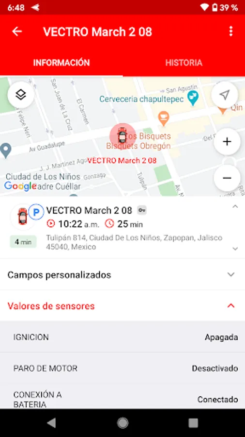 In the Vectro GPS App you can see the information about the tracked units,