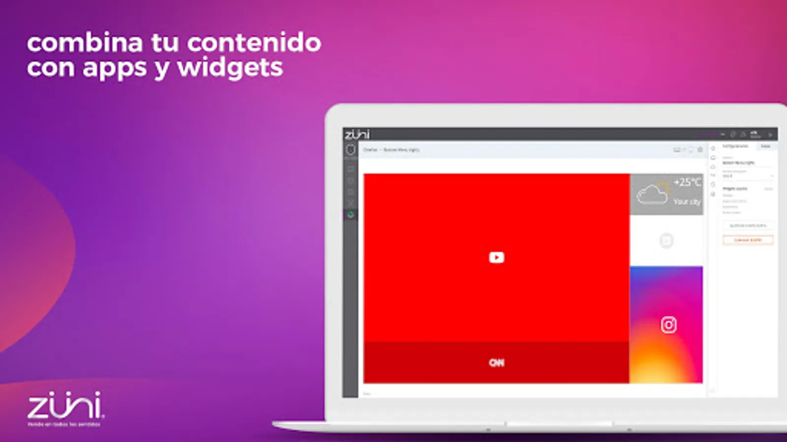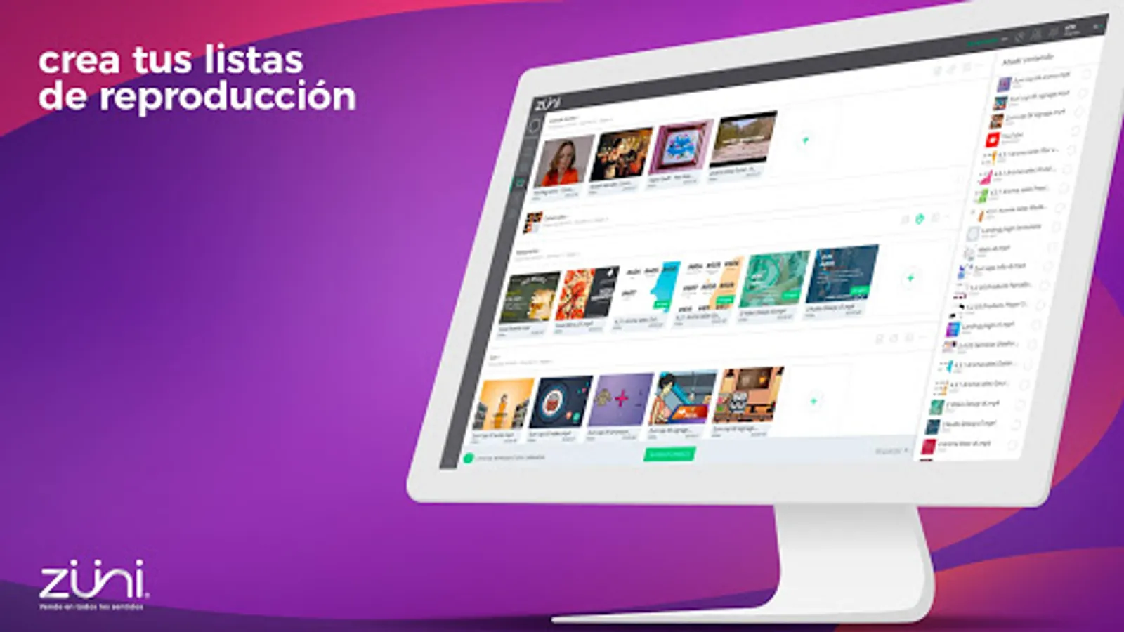 This is a special Android OS based application, which you can download onto your digital screen at any time. Just launch the app and it will automatically transform your screen into a digital signage powered by Zuni. Manage various types of content, create the playlists, group your screens and remotely change its settings using simple web-based Zuni Content Manager (ds.zuni.com.mx) and secure cloud-based server powered by Amazon. Deploy your own digital signage network fast, simple, with minimal cost and maximum efficiency.