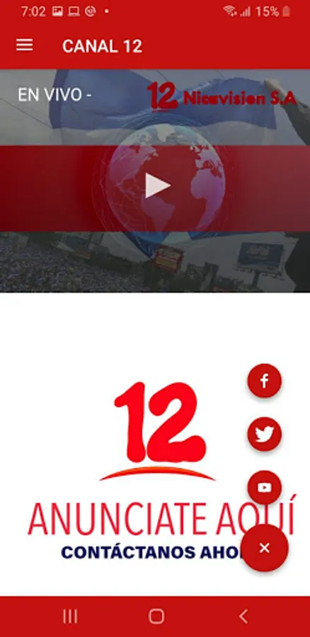 NICAVISION SA, is the legal entity that owns CANAL 12, it was founded on March 6, 1993 by its current owners: Nydia Fernanda (Nanda) and Mariano Valle Peters, both people with more than 50 years of experience in broadcasting and national television . Channel 12 began its broadcasts on December 11, 1994, it was the fifth television channel that was installed in Nicaragua, after the replacement of power by the FSLN. Its signal is received throughout the country, over the air and through the Claro-TV cable system, and broadcasts on channel 127 of Claro's satellite system. Its transmission is NTSC format and its radio prefix is television is YNLG.TV. It is part of the group of television and radio stations: Radio Amor, Radio Sonora, Estación X, Radio Magic and 106.7FM. To contact NICAVISION S.A (Channel 12). it is recommended to call the phones below. Phones: +505 2266-0691 +505 2266-9984 +505 2266-9985 Fax: +505 2266-1424